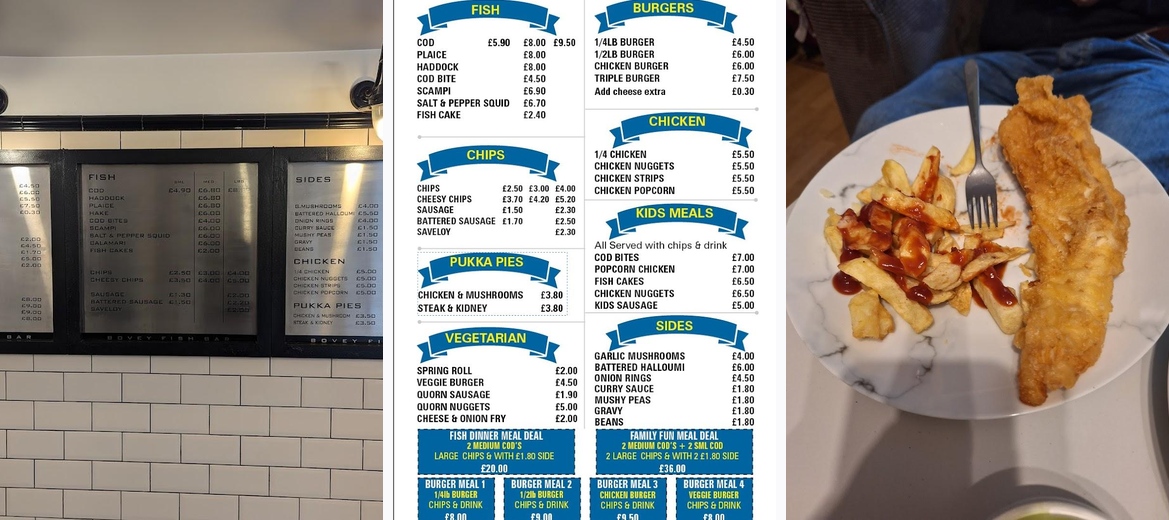 Discover Bovey Fish Bar in Bovey Tracey, where delicious fish and chips meet casual dining! Enjoy takeaway and delivery options featuring fresh cod, mouthwatering sausage, and homemade tartar sauce, all at great prices. Perfect for lunch or dinner, family-friendly atmosphere, and wheelchair-accessible parking. Visit us at 77 Fore St or call +44 1626 437640 for pre-orders!