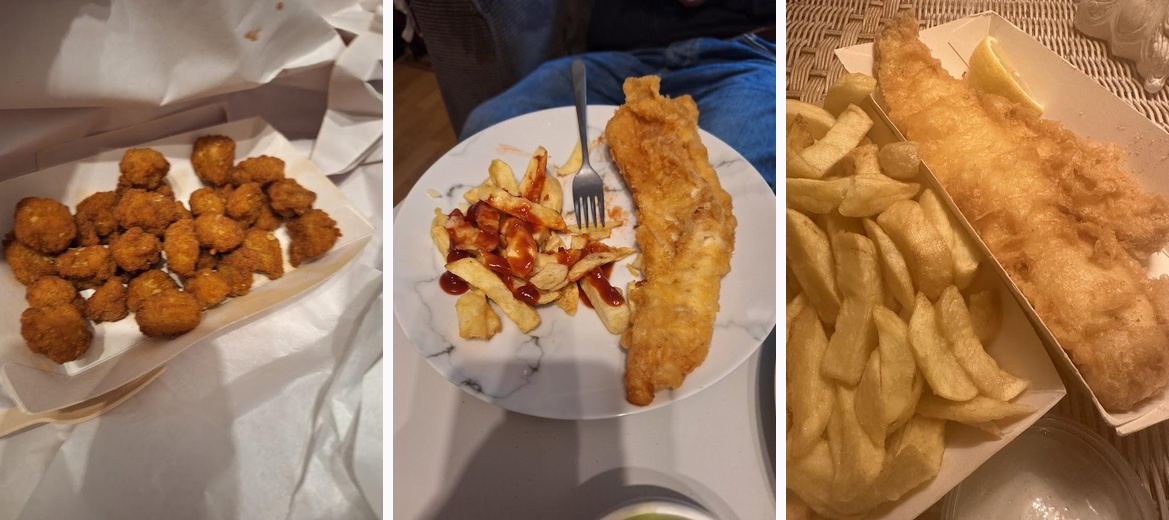 Excellent food, had cod and chips and sausage and chips. Cooked to order, lovely and hot and not greasy at all.