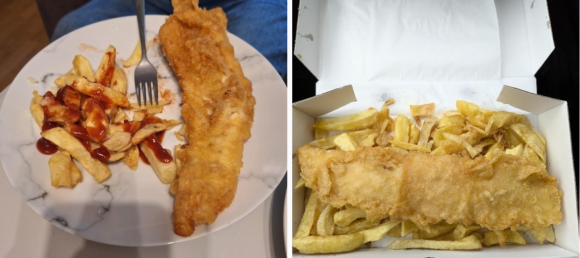 Perfectly cooked fresh haddock and chips! 10/10 Crispy batter, succulent fish, lemon and tartare included. Chips lovely and fresh, good mix of chunky chips and a few crispy bits. Asked how I’d like it wrapped and how much S&V. Friendly service and great food, will visit again!